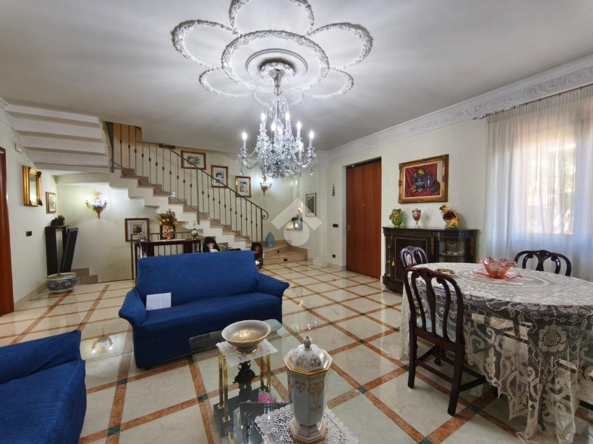 La villa, caratterizzata da spazi generosi e ben distribuiti, si apre su un ampio salone doppio, reso luminoso da grandi aperture e collegato tramite una porta scorrevole alla cucina abitabile. Quest’ultima, spaziosa e funzionale, è dotata anche di un comodo bagno di servizio, perfetto per la zona giorno.