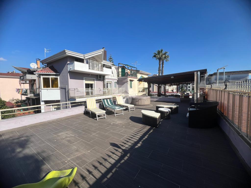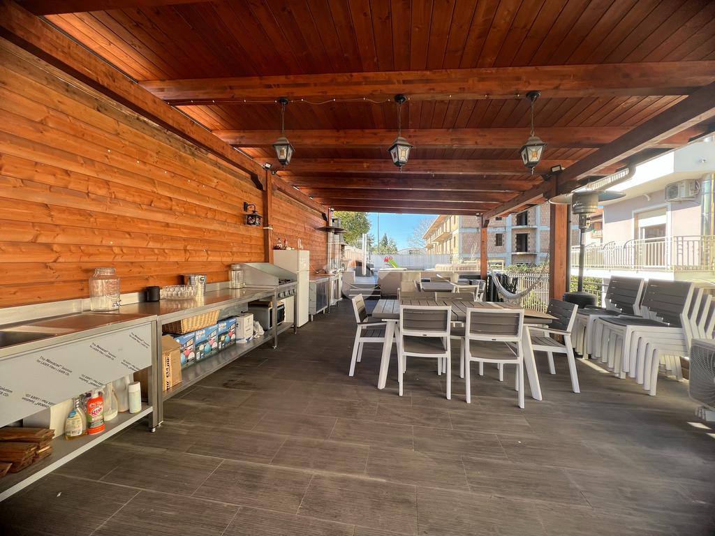 Sul tetto della dependance è stato realizzato un solarium attrezzato con piscina, barbecue e forno a legna per pizza, ideale per momenti di relax e convivialità.